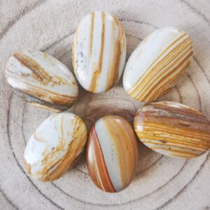 La forme ovale évoque le calme et l’équilibre, elle diffuse une énergie régulière parfaite pour les applications de bien-être. Douce et agréable à tenir dans la main, elle peut être utilisée comme pierre amulette de poche, pierre de soin ou de méditation, ou de décoration.